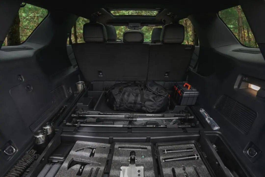 精细化储物设计进一步提升了新车的实用性,置物板下新增隐藏储物盒,拓展近100L储存空间;后备厢配备15个储物格,最里层装有可移动挡板,能实现物品分类收纳,无论是长途穿越的装备装载,还是户外休憩的场景切换,都能从容应对。