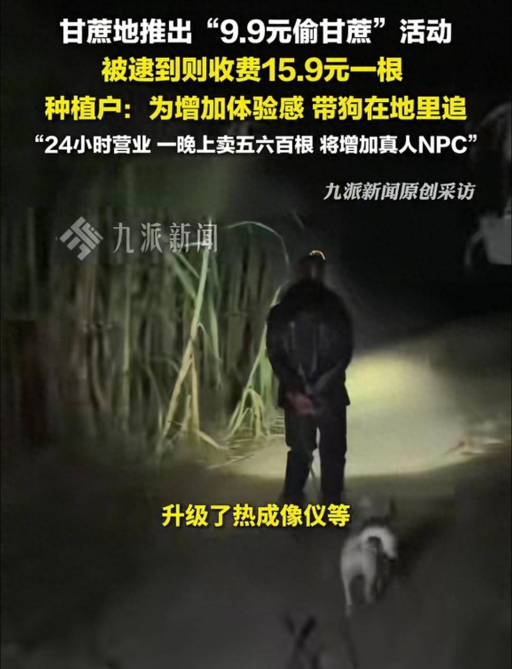 这活动咋玩的呢?你要是能悄咪咪摘到甘蔗,9.9元一根拿走。但要是被老板“逮”到了,就得付15.9元一根。为了增加这“偷”的刺激感,老板还带着狗在地里追人,甚至用上了热成像仪,24小时不打烊。网友们乐了,都说这哪里是摘甘蔗,分明是“甘蔗地版密室逃脱”!