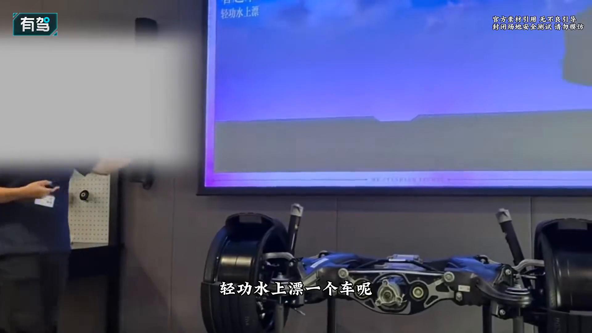 其实这已经不是奔驰第一次提及尊界了,早前针对尊界S800的踏水无痕测试,奔驰高管是这么去点评的。这里可以看到轻功水上漂一个车驶过一个坑坎一个井盖,车轮完全没有掉下去,离开了地面。